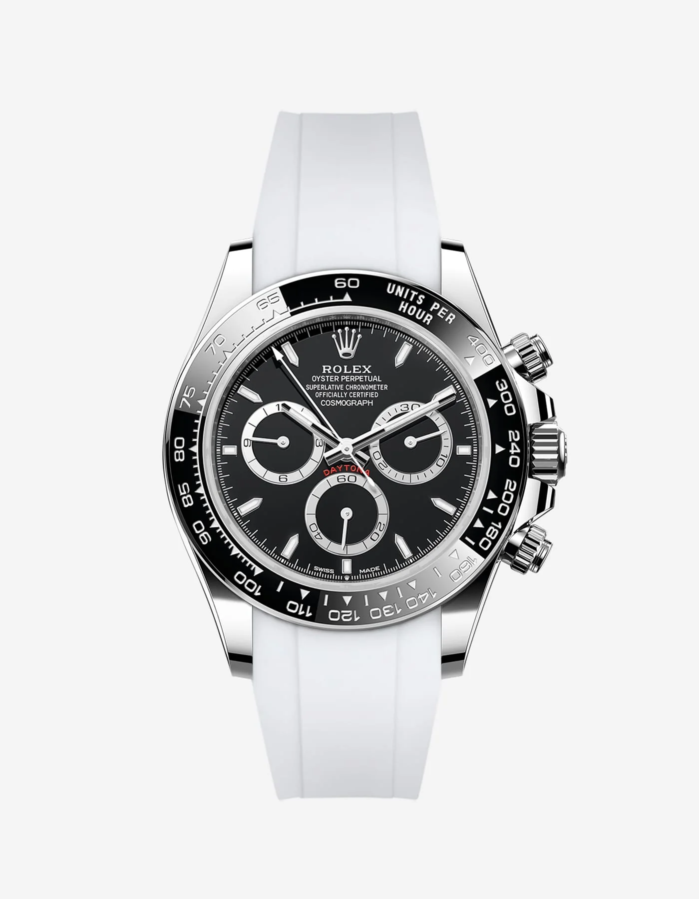 These Vulcanized FKM Rubber watch straps are designed to fit the Rolex Daytona Cosmograph 116500LN black dial. Available in black and white.