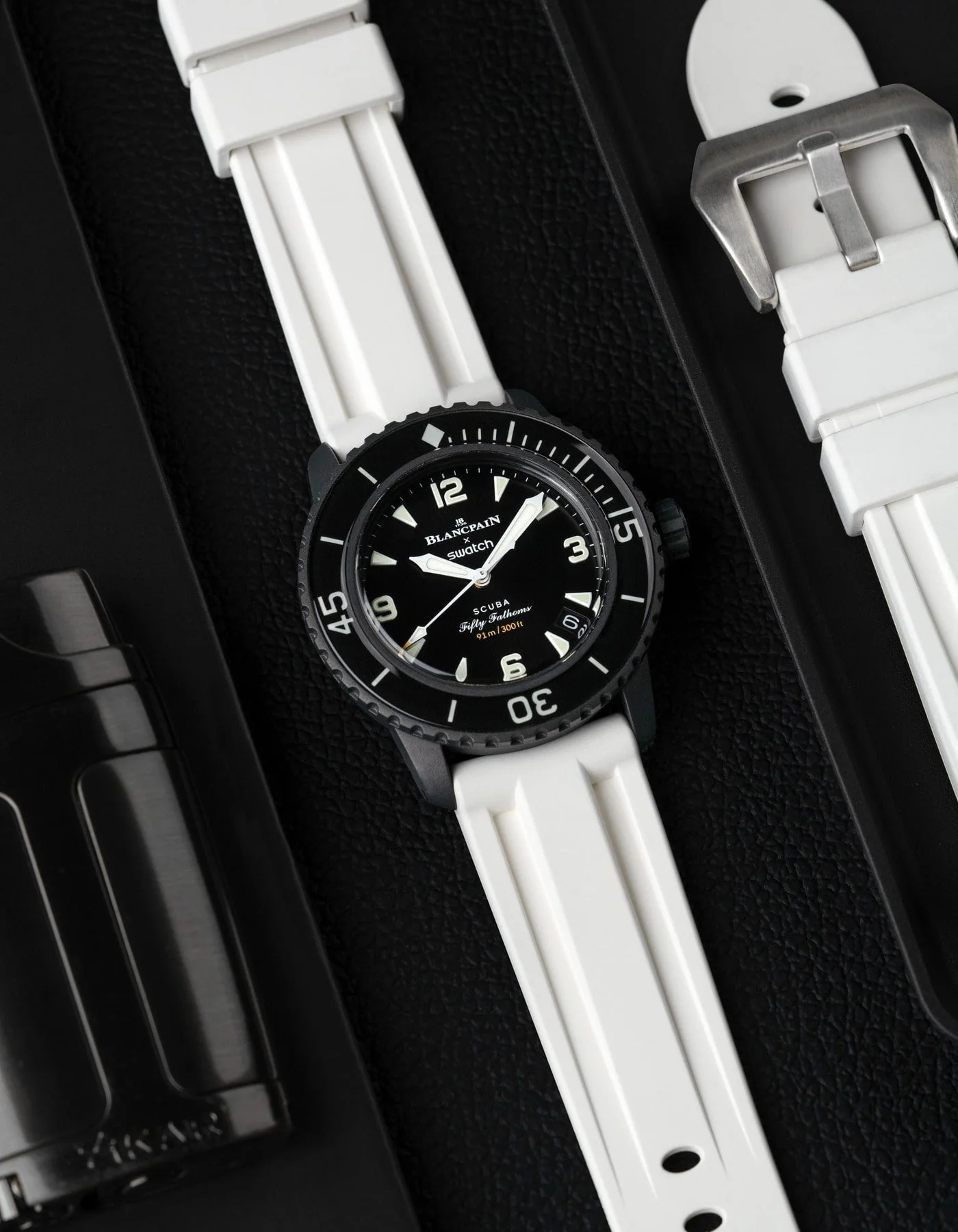 White is the cleanest way to give your watch a fresh, modern look. This strap has a universal straight end design and comes in 20mm, 22mm and 24mm lug width, which makes it a great match for most watches with standard lugs. Made from premium vulcanized FKM rubber, it is built to handle water, heat and daily use without losing its shape. It is also easy to install at home, so switching to white is something you can do yourself in minutes.