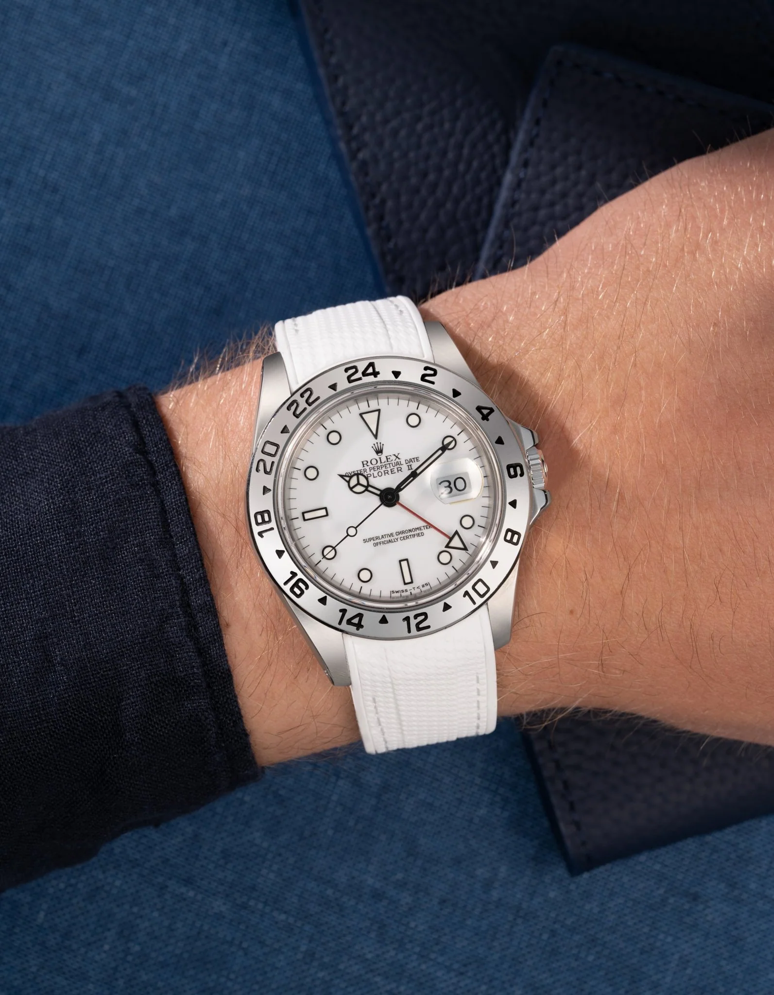 Note: This strap is not manufactured or endorsed by Rolex SA. It is a third-party accessory designed specifically to fit the Rolex Explorer II 16570.